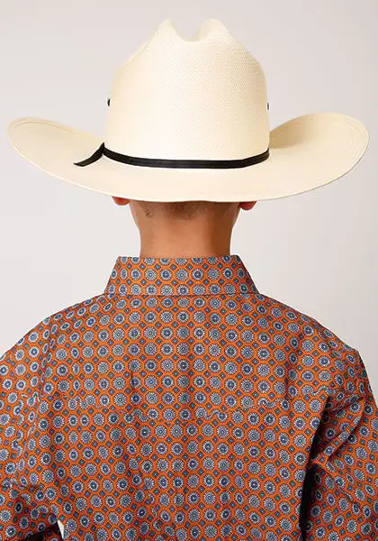 Orange will Blue Circle Print Long Sleeve Snap Front Shirt.
