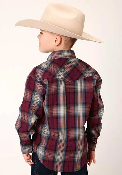 Wine Plaid Long Sleeve Snap Front Shirt.
