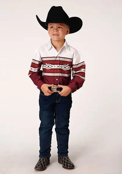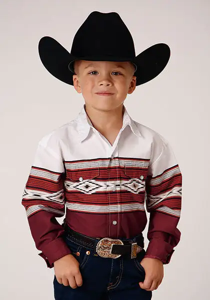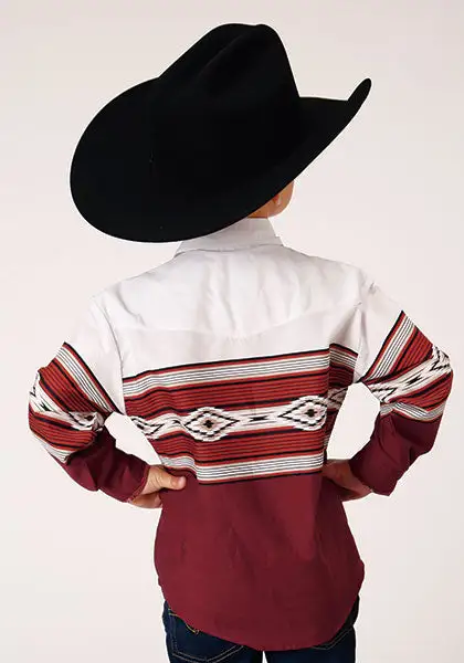 Brown and White Serape Border Print Long Sleeve Snap Front Shirt.