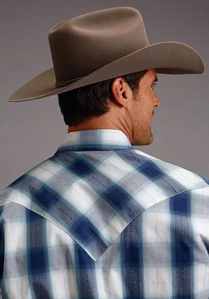 Blue Ice Ombre Plaid Long Sleeve Snap Front Shirt.