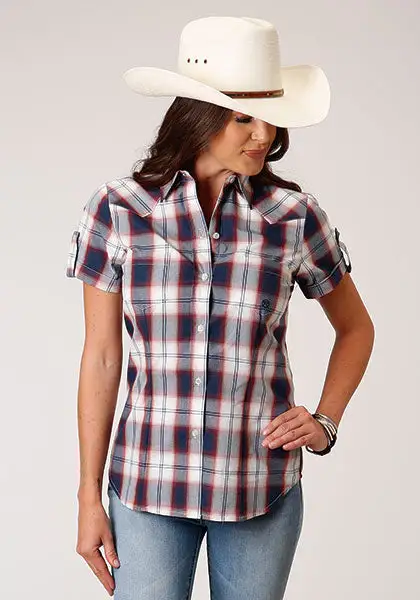 Blue, White and Red Liberty Bell Plaid Short Sleeve Button Down Shirt.