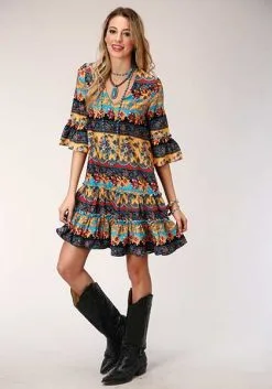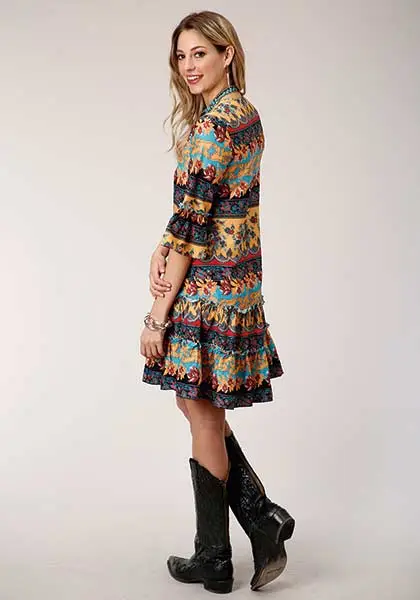 Multi-Color Baroque Floral Print Gypsy Queen Dress.