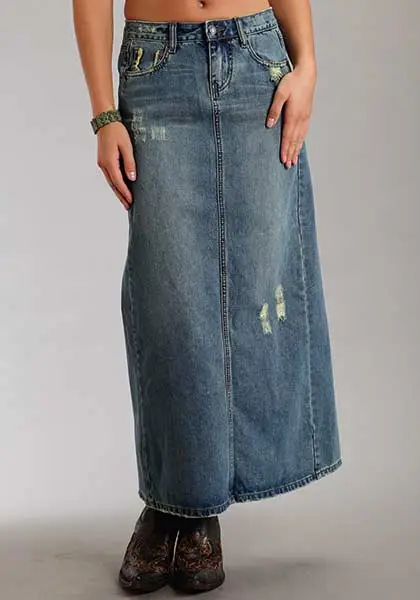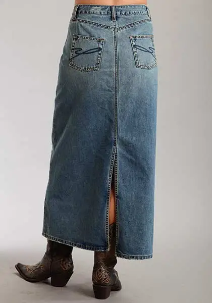 Roper Women’s Long Blue Denim With Slit In Back Skirt