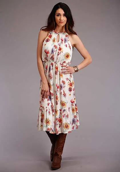 Roper Women’s White Sleeveless With Multi Color Floral Pattern Dress