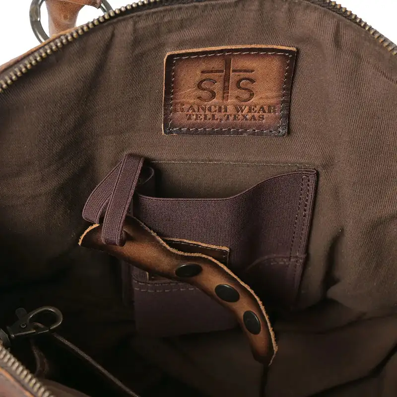- Woven Fabric Exterior With Full Grain Leather Trim