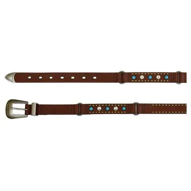 Brown Western Belt with Mixed Metal Studs, Turquoise Studs and Rhinestone Studs.
