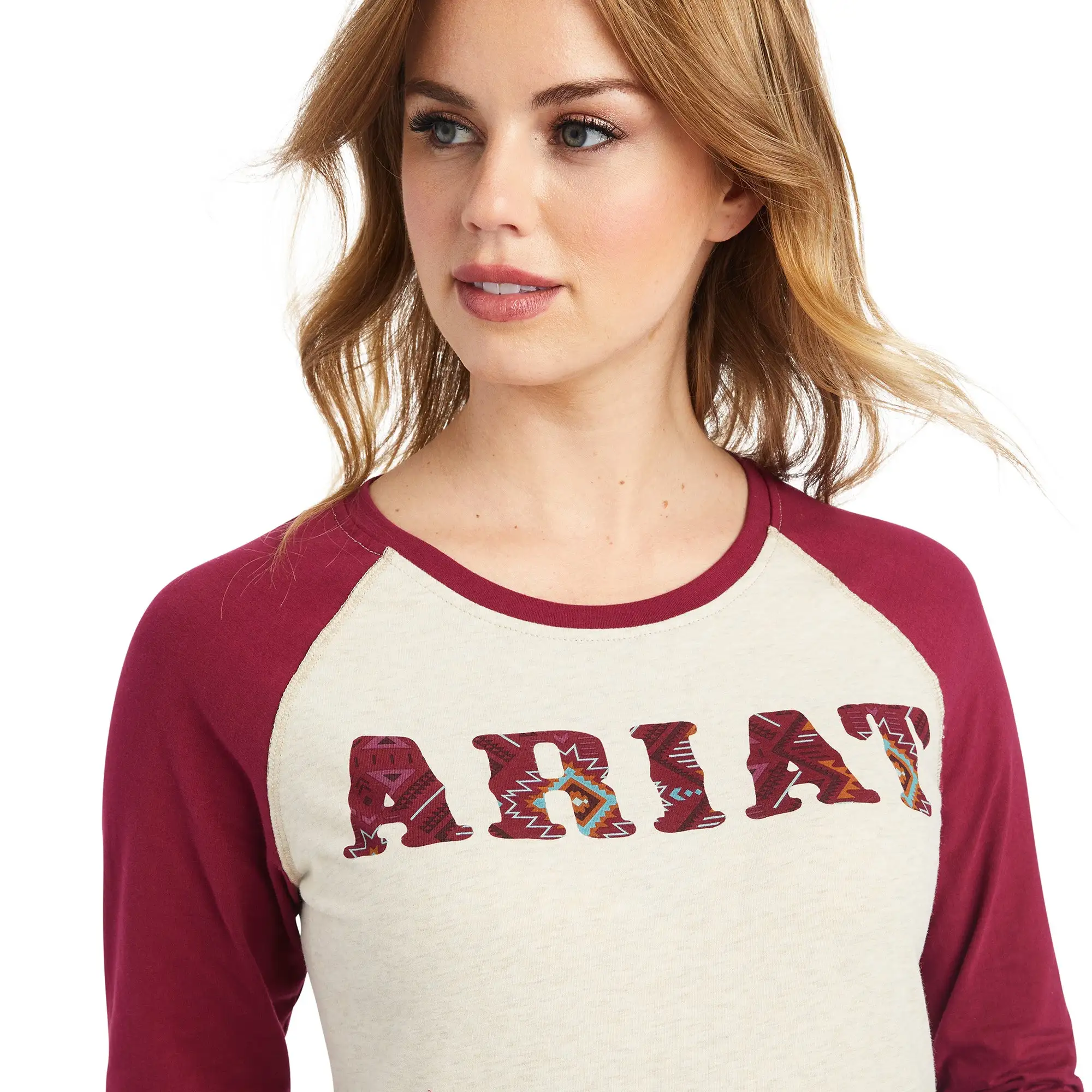 Oatmeal Heather and Beet Red REAL Logo Baseball T-Shirt.