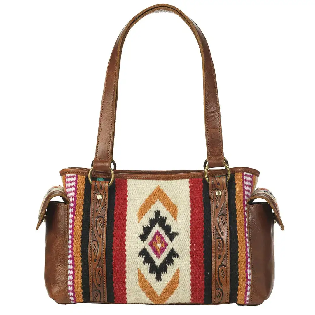 Ariat Wool Blanket Tooled Leather Multi Color Satchel