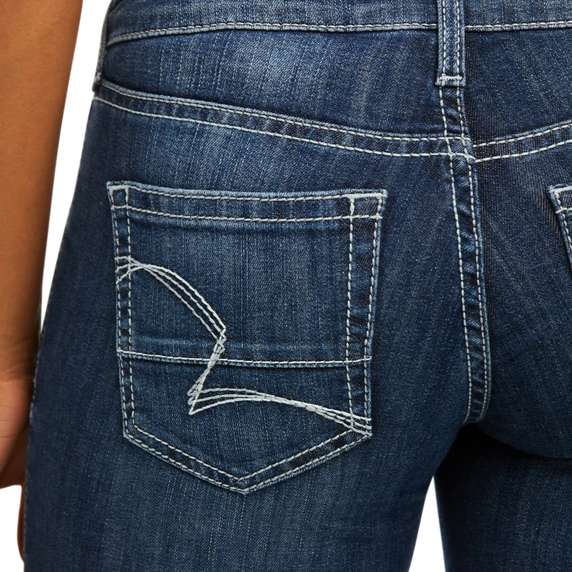 - Dark Wash with Hand Sanding and Fashion Back Pocket