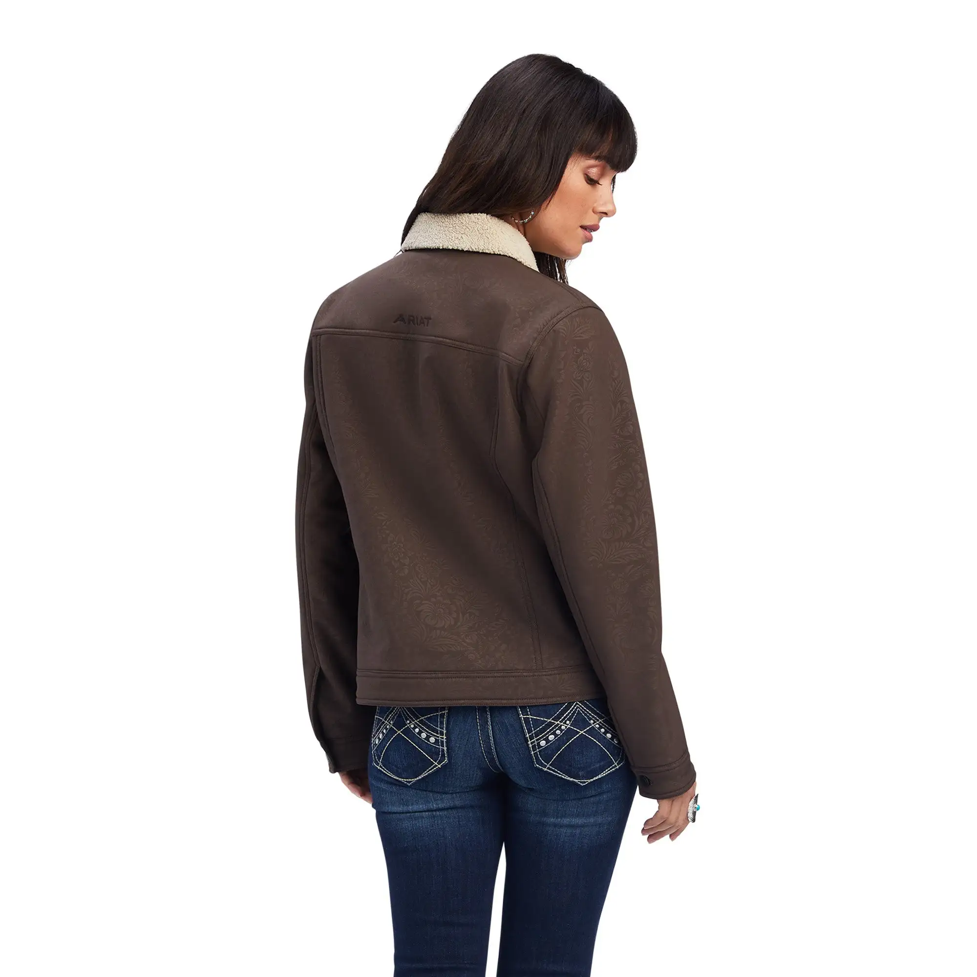 Brazil Nut Embossed Tooled Floral Trucker Softshell Jacket.