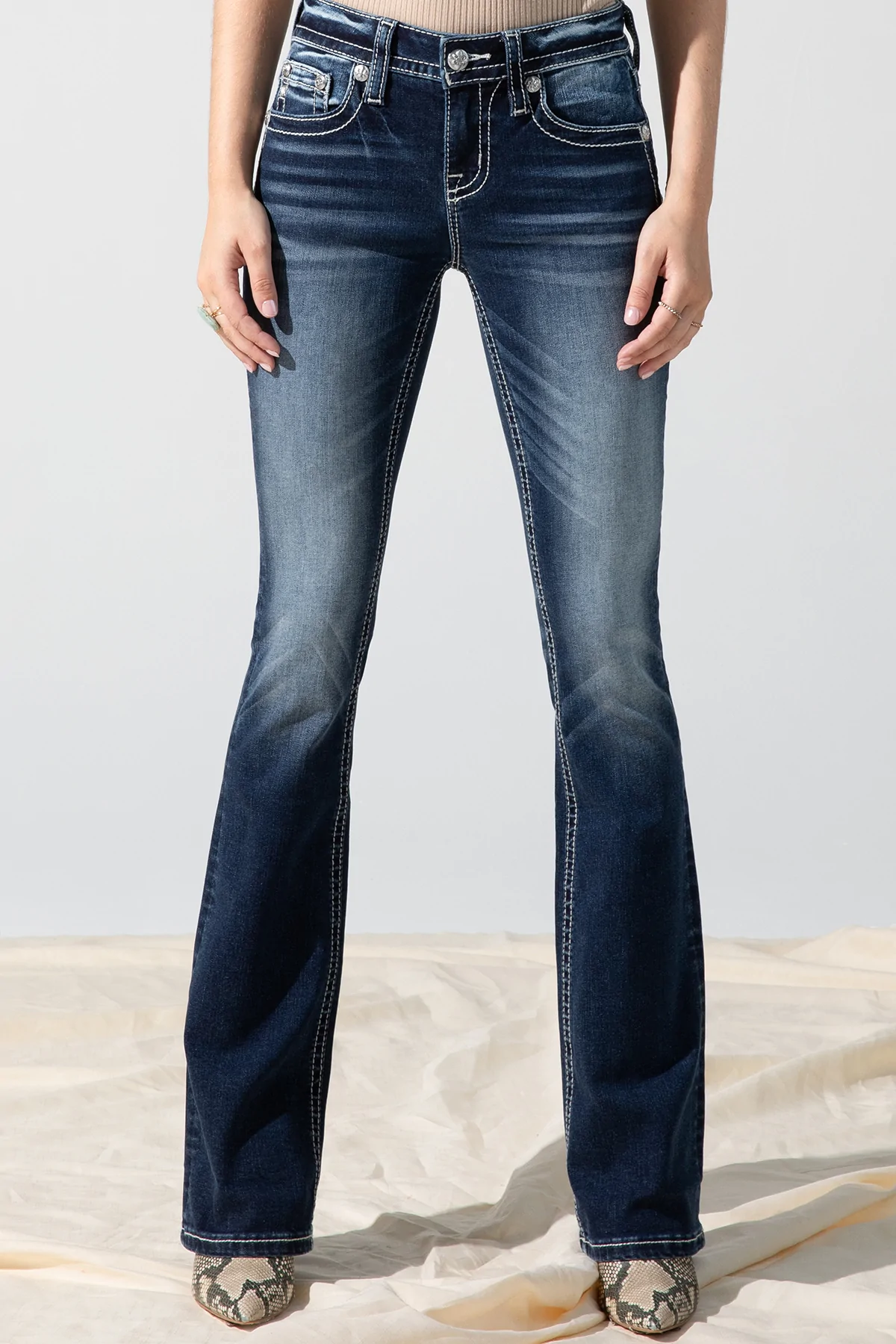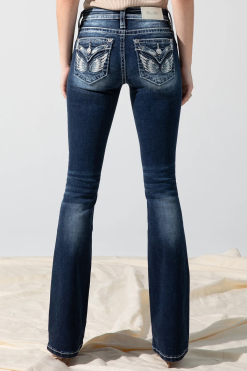 Miss Me Women’s Mid Rise Dark Wash Embroidered Wing Jean
