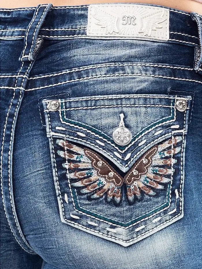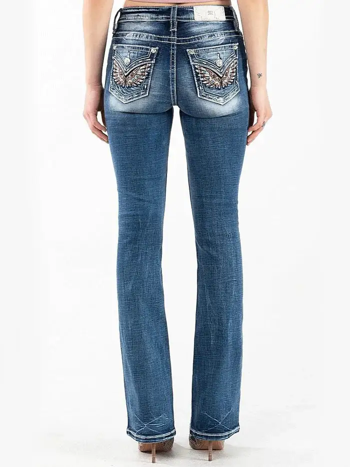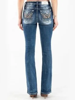 Miss Me Women’s Mid Rise Vintage Blue Bootcut With Wing Pocket Jean