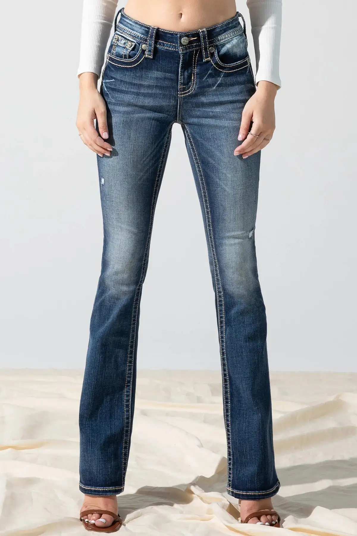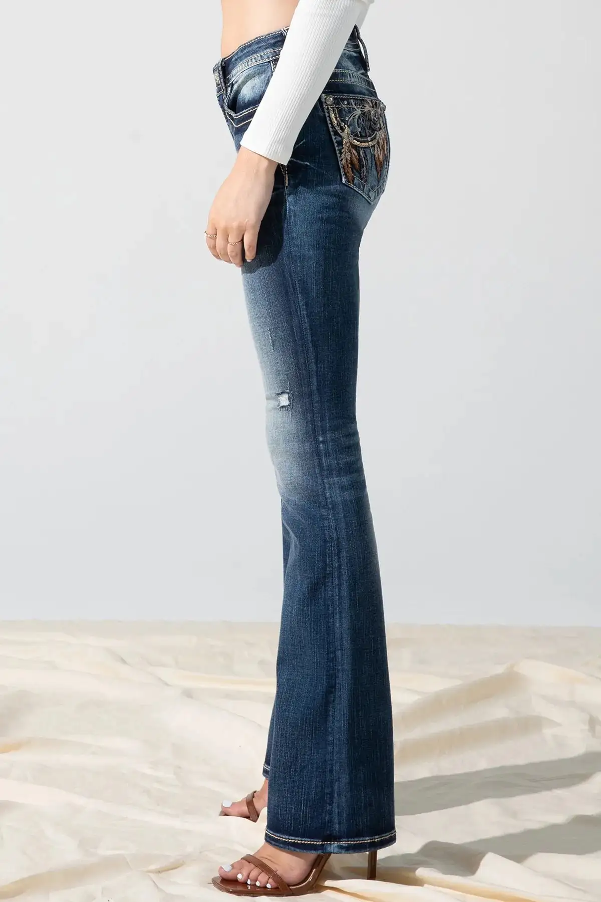 Miss Me Women’s Mid Rise Bootcut Feather & Dream Catcher Pocket