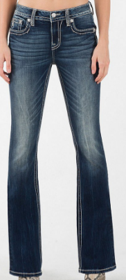 Dark Wash Bootcut Jean with Whip Stitch Detail.