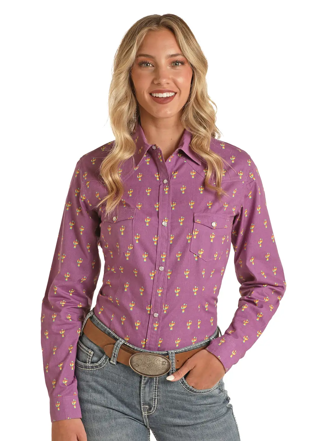 Dark Orchard with Serape Cactus Print Long Sleeve Snap Front Shirt.