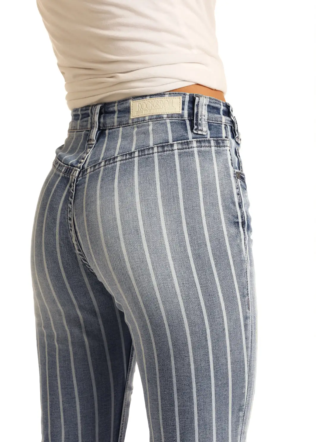 Light Blue with Printed White Stripe High Rise Trouser.