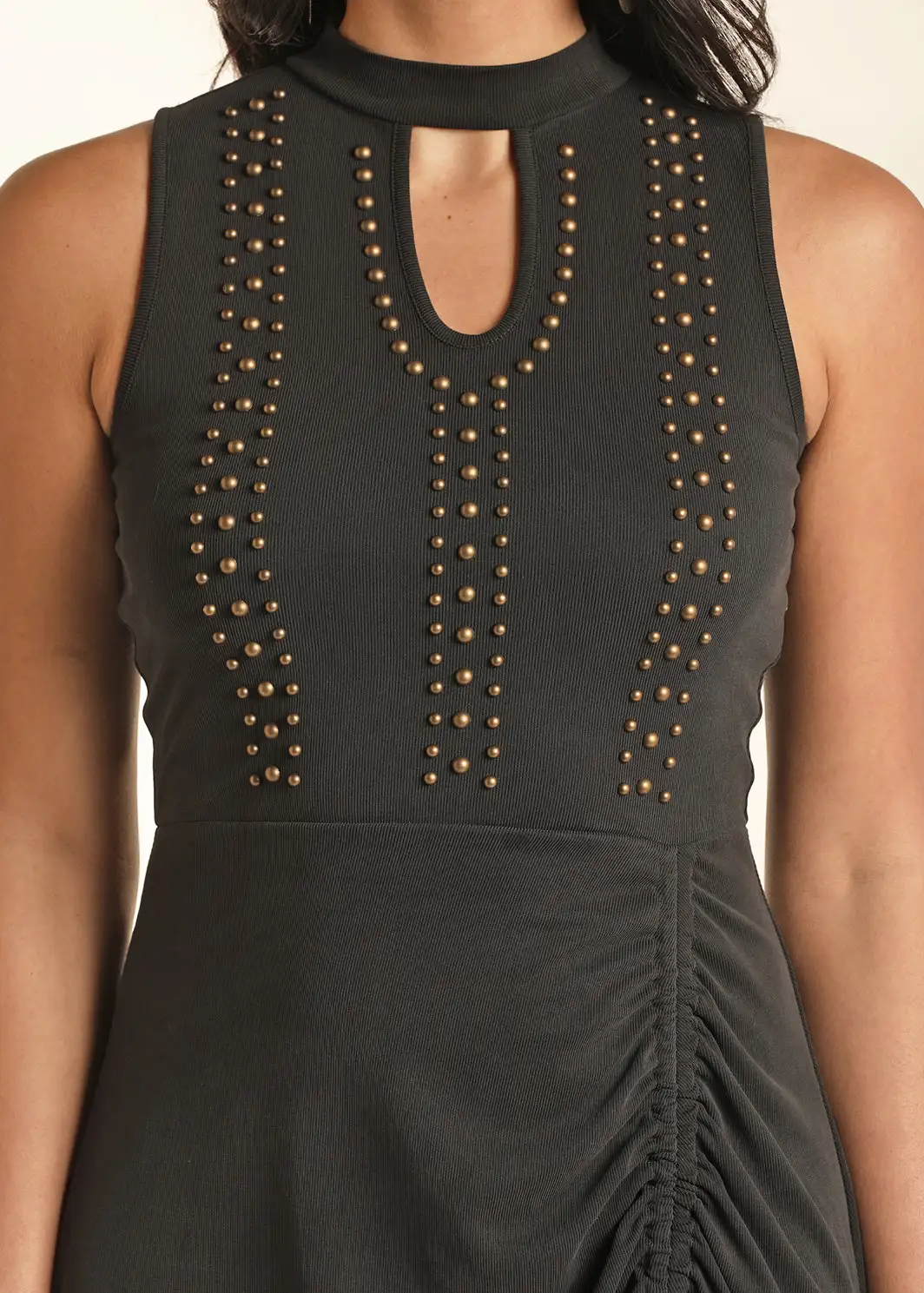 Black Ribbed Maxi Dress with Stud Detail.