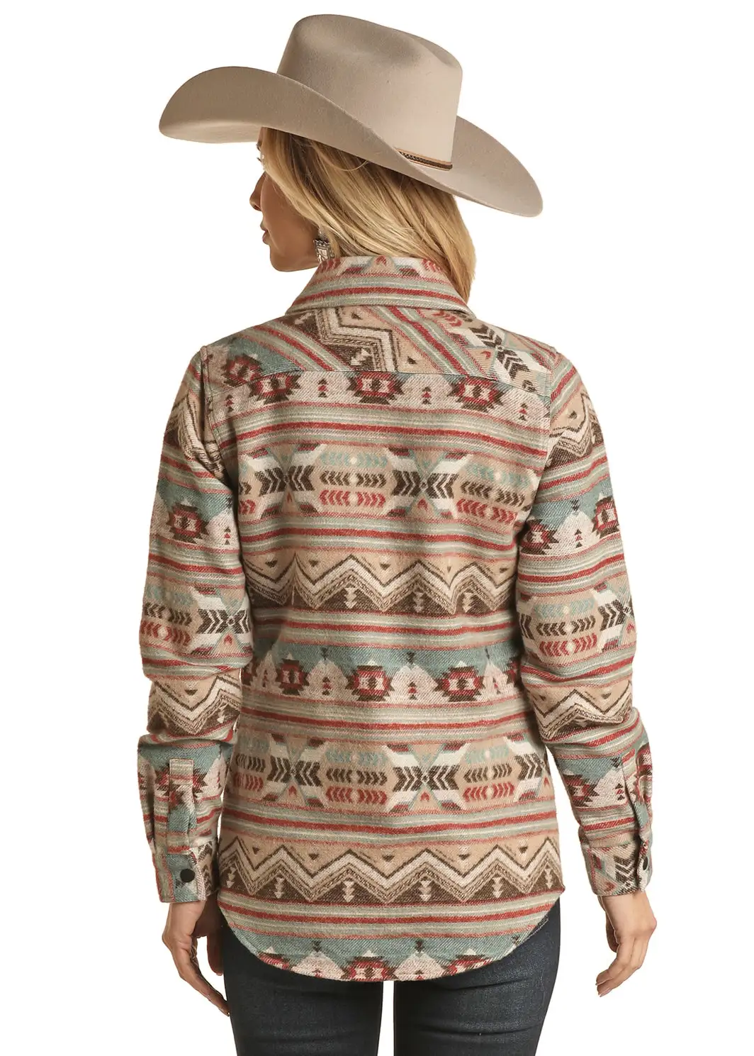 Brown Multi Aztec Stripe Print Shirt Jacket.