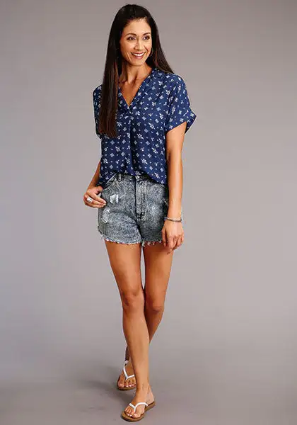 Blue Vintage Ditzy Print Short Sleeve Blouse.