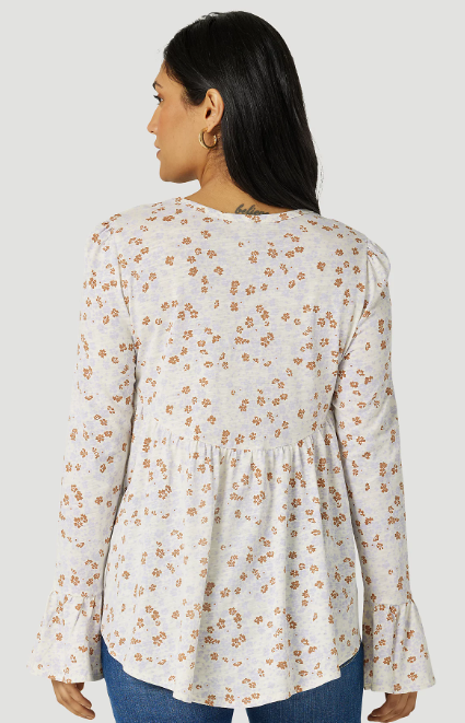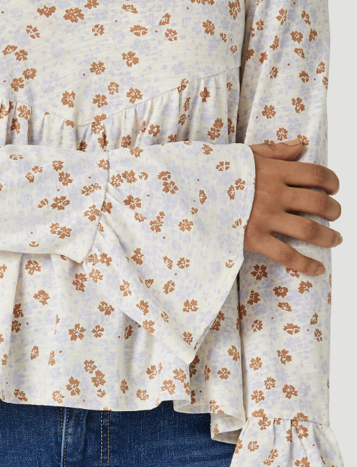 White and Floral Print Boho Sleeve Babydoll Blouse.