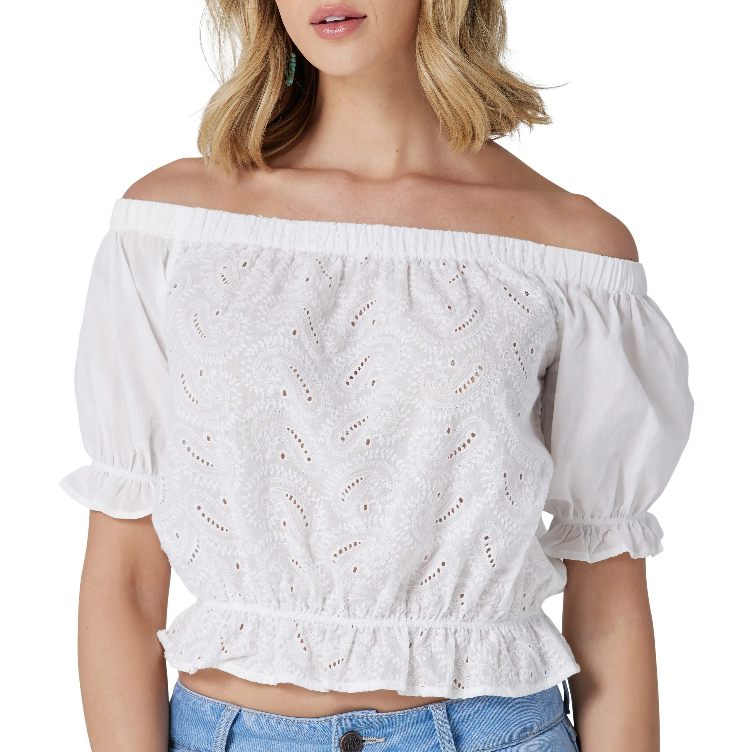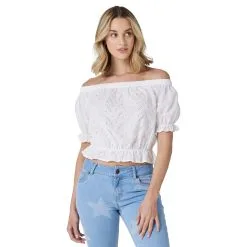 Snow White Short Sleeve Americana Crop Peasant Blouse.