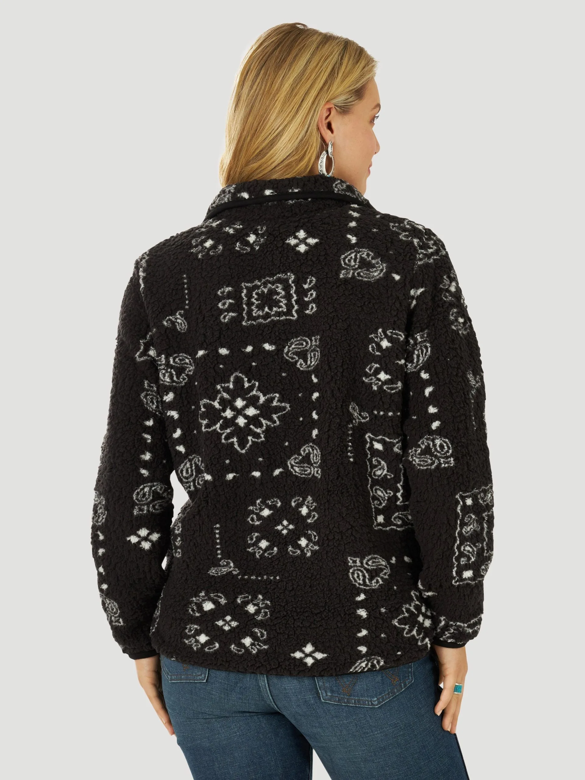 Black with White Bandana Print Sherpa Pullover.