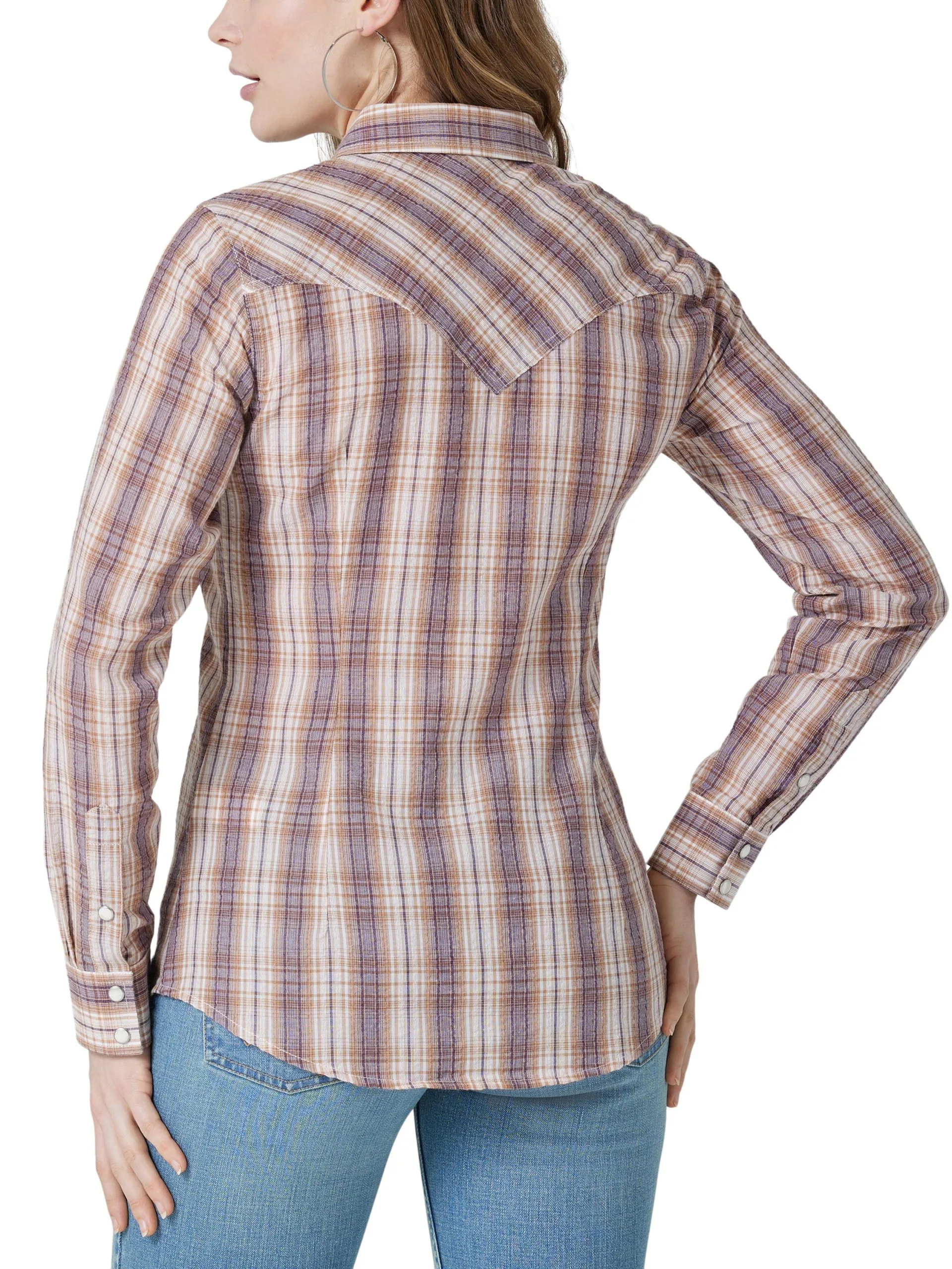 Pink Mauve Plaid Long Sleeve Snap Front Shirt.