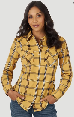 Yellow Plaid Long Sleeve Snap Front Shirt.